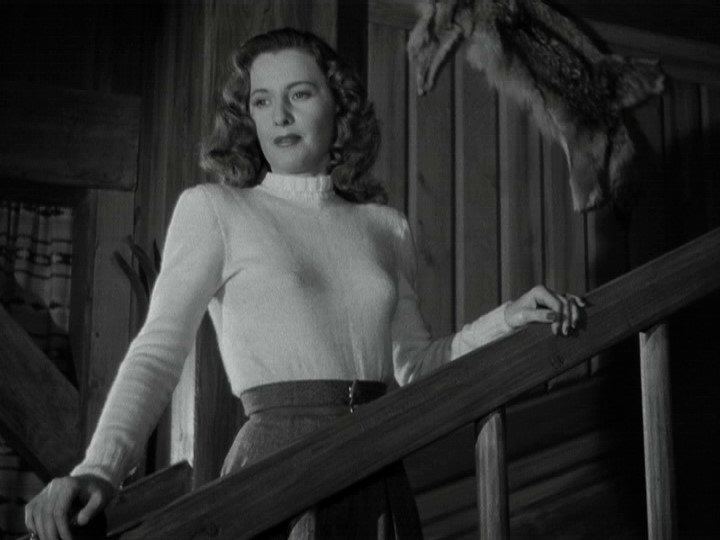 Jessica Drummond (Barbara Stanwyck) is a widow whose husband has recently passed away after a long battle with illness. She’s adjusting to raising their two sons on her own while grieving her beloved husband. She is feeling very despondent and lonely, but at the same time is resisting pressure from her family to get together with their lawyer, Frank (Warner Anderson). To clear her mind and get a change of scenery, she decides to leave town and spend part of the winter at Lake Tahoe with her friends Cary and Gina Abbott (John Ridgely and Eve Arden), who own a cabin there.