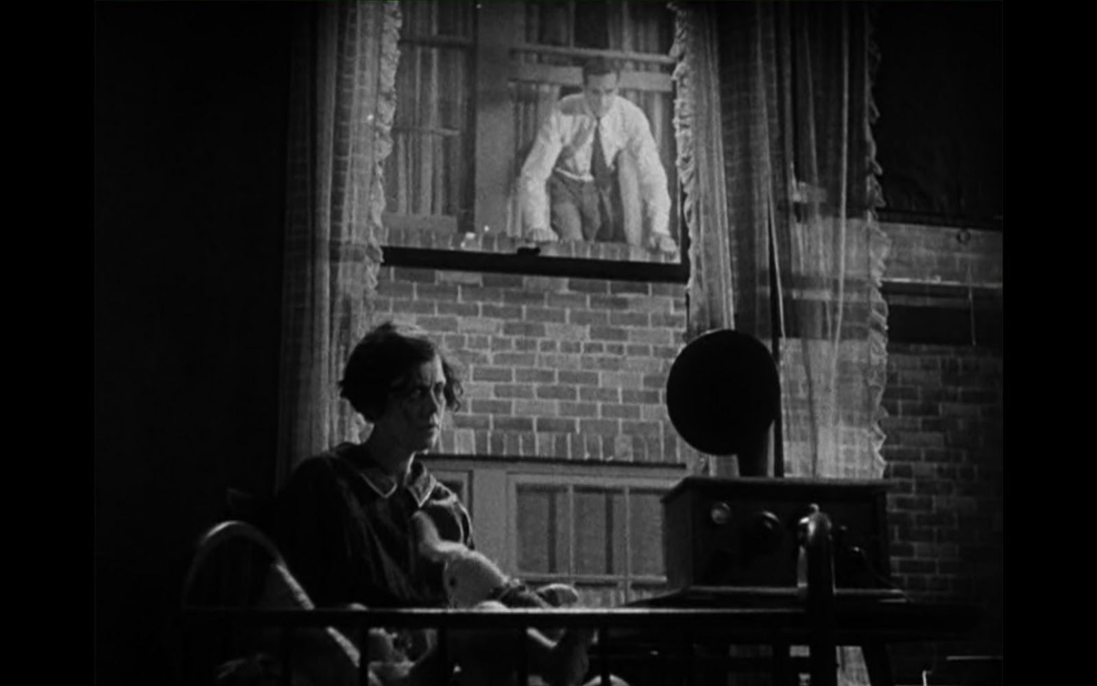 John is planning on jumping out of his window to commit suicide when a sermon by Florence over the radio convinces him otherwise. (Image via visibleartifacts.blogspot.com)