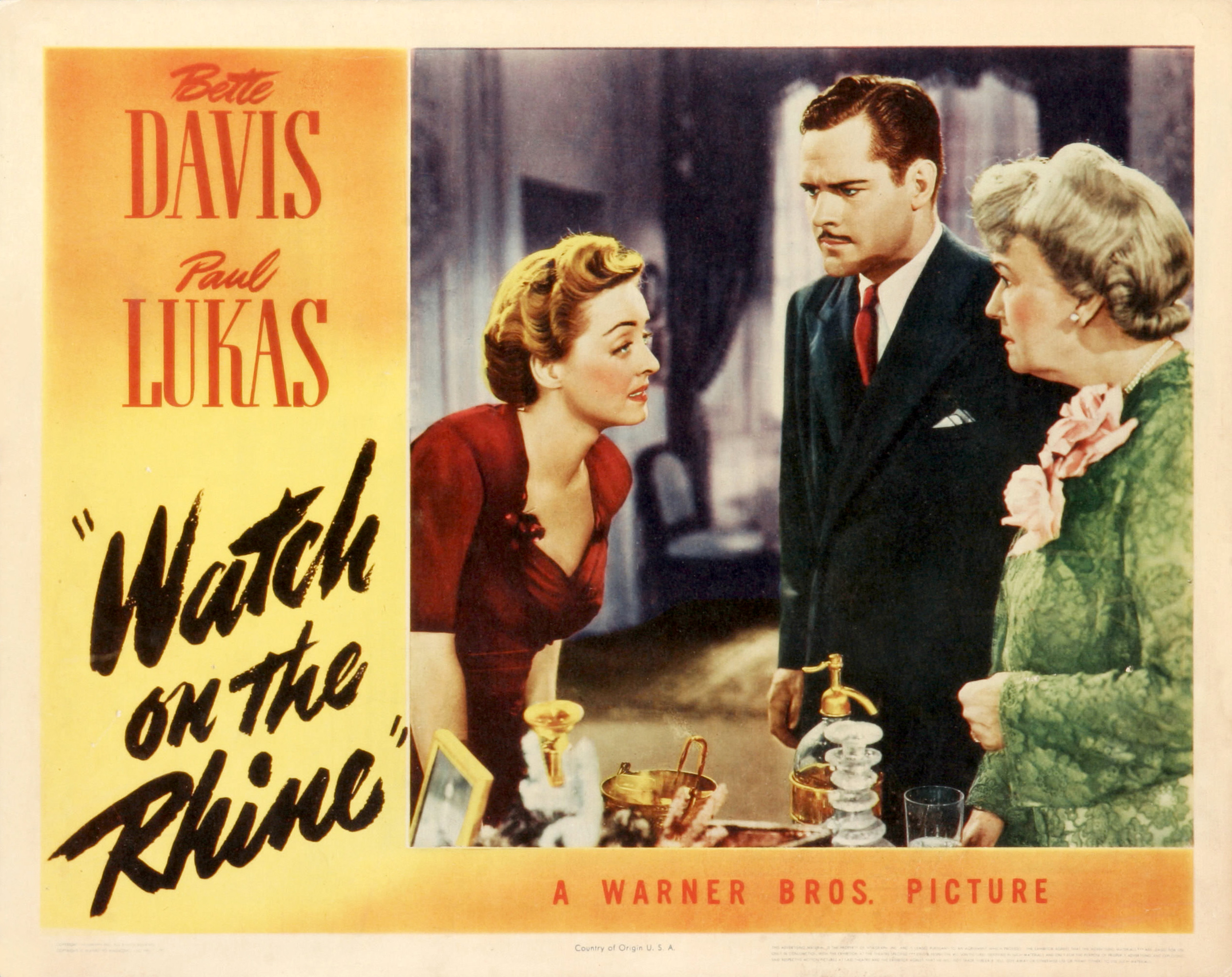 Watch on the Rhine was nominated for the Academy Award for Best Picture, Best Adapted Screenplay and Best Supporting Actress. The film won the New York Film Critics Circle award for Best Picture. Paul Lukas beat out Humphrey Bogart’s now legendary Casablanca performance to take home the Academy Award for Best Actor, also taking home the Best Actor honors from the Golden Globes and New York Film Critics Circle Awards.