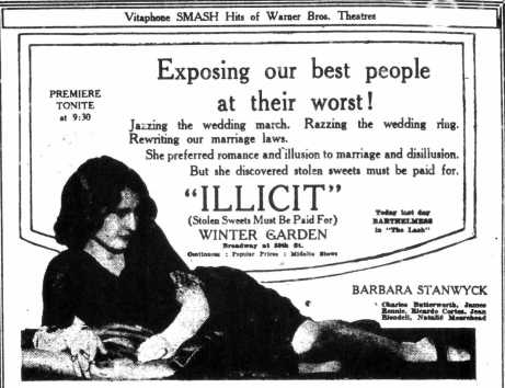 Archie Mayo’s Illicit is a pretty good watch with generally solid performances, but it isn’t one of Stanwyck’s most gripping films. Still, fans of the actress or any viewer who finds the premise intriguing will get some enjoyment out of a viewing. The score: 3/5