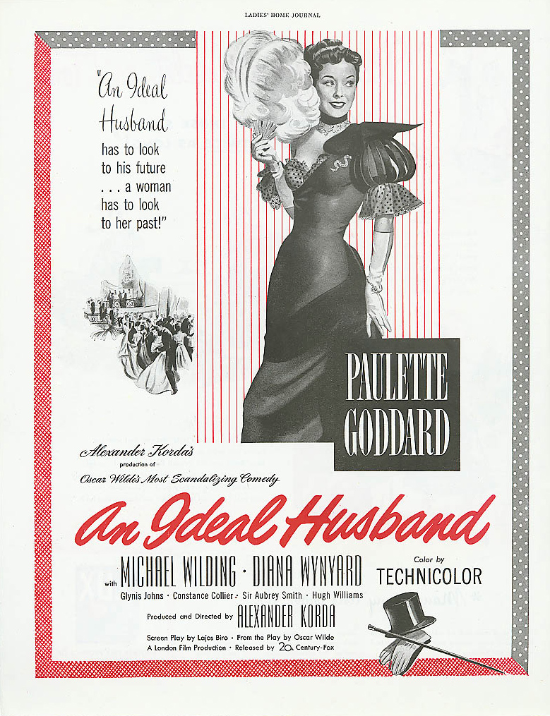 Alexander Korda directs 1947’s An Ideal Husband. This technicolor film is based on the play of the same name by Oscar Wilde and was adapted for the screen by Lajos Biro. The original Broadway production of Wilde’s play opened in 1895. This story has served as the basis for five theatrical films, four television movies and three television episodes.