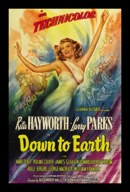 If this plot sounds familiar, that’s because it is. Down to Earth, this 1947 film starring Rita Hayworth as Terpsichore, served as an inspiration for the 1980 Olivia Newton-John/Gene Kelly so-bad-it’s-freaking-great musical film, Xanadu.