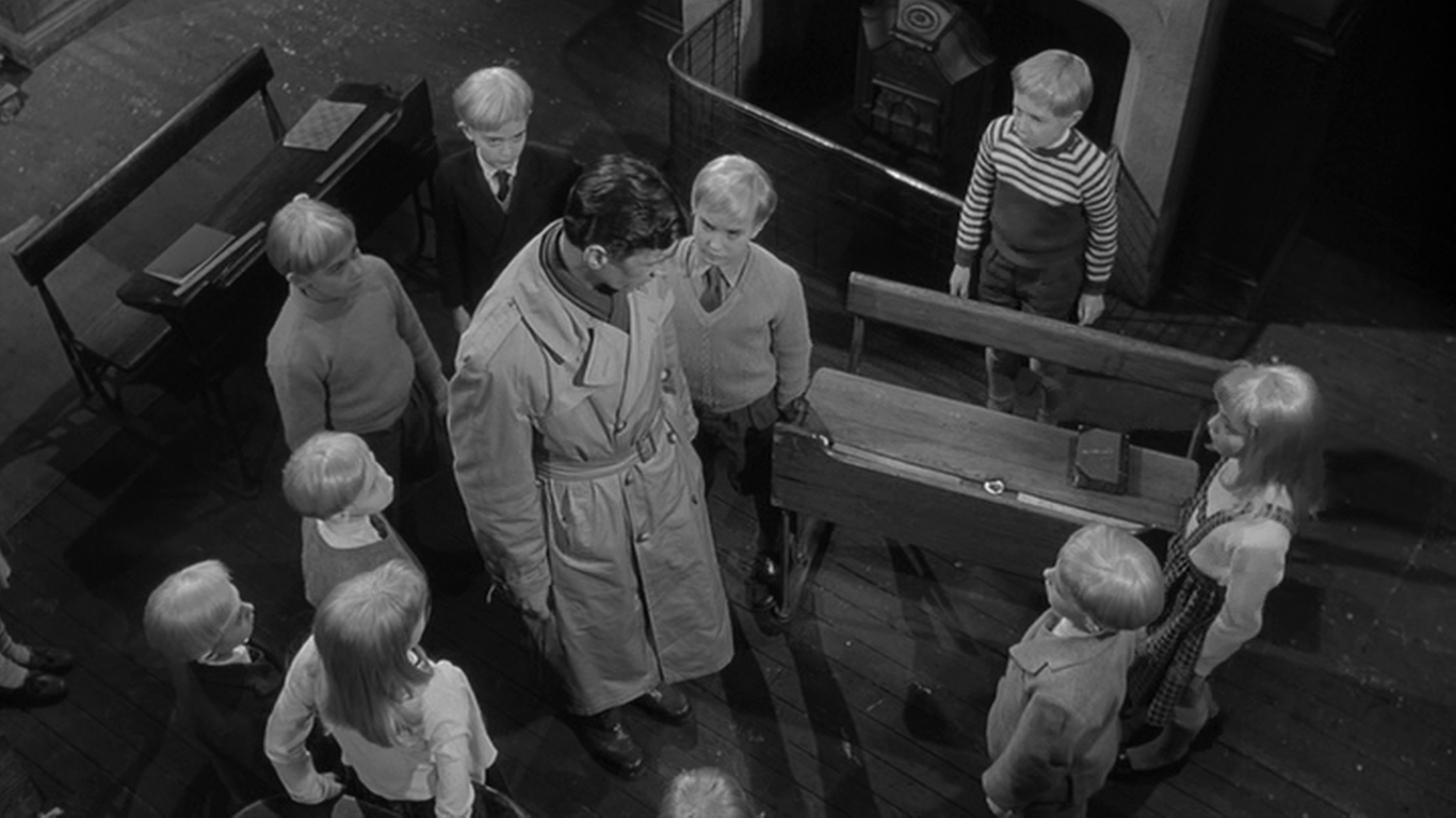 Within the first couple of minutes of Village of the Damned, people start dropping dead. I’m not talking just a few more corpses than usual — dozens upon dozens of people are slumped in their chairs, turning cold on the floor or collapsed in the middle of the street. Midwich has been met with mass destruction of its population… or so it would seem.
