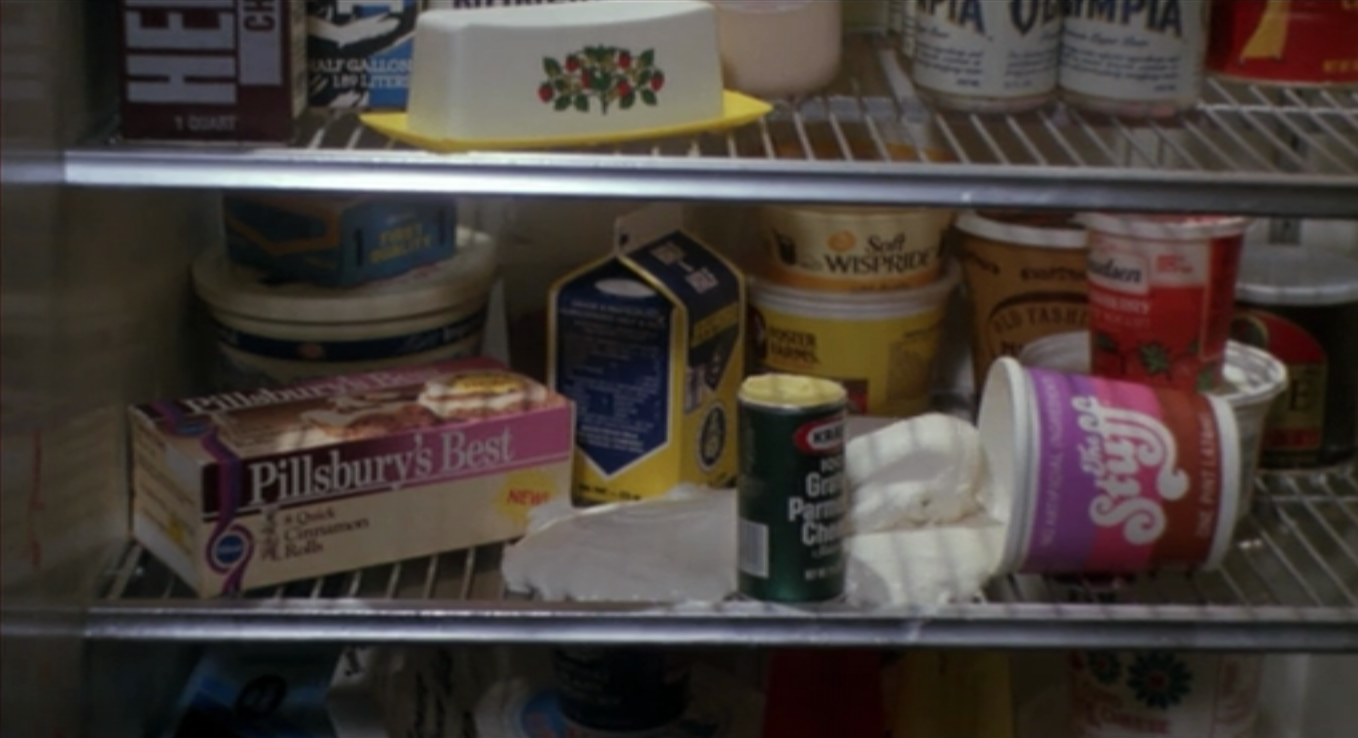 Everything about this film is full of cheese. Brilliantly awful infomercials starring actresses in fur coats advertise “The Stuff” with catchy ’80s pop tunes: