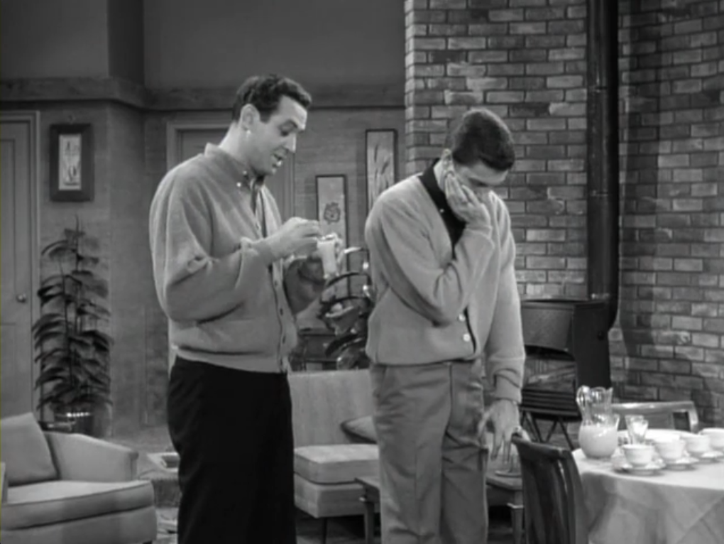 Reaction: This episode is hilarious to me because the angry-sneeze theory sounds like something my sister and I would come up with. Mary Tyler Moore and Dick Van Dyke are in top comedic form in the episode, too, taking a somewhat off-the-wall storyline and making it a whole lot of fun to watch. Van Dyke gets to pull a lot of funny faces what with his constant sneezing, and Moore seems truly offended by his “allergy” to her — but in a overzealous, hilarious way rather than being seriously offended.