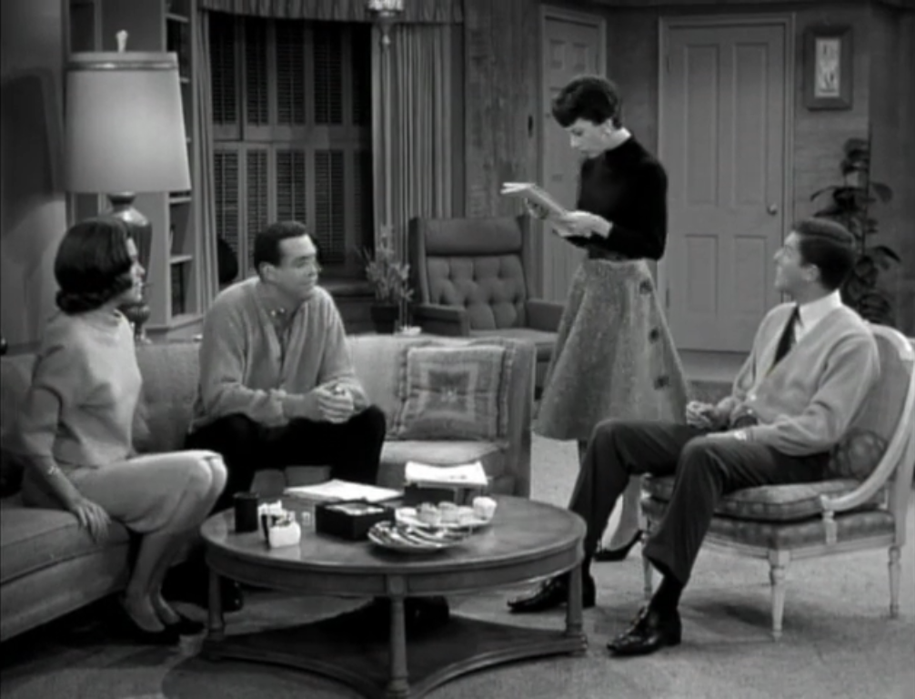 Reaction: This episode is interesting to watch as a 21st century viewer because Rob and Laura have a conversation about keeping a gun in the home. Laura becomes scared when they read of the burglar and thinks Rob should borrow one of Jerry’s rifles for protection, while Rob thinks that he shouldn’t have to resort to keeping “aggressive” weapons in the home. Gun control is a hot-button topic nowadays and the “personal protection” firearm industry is huge, so this issue is more relevant than ever to the modern viewer. Of course, the episode kind of makes light of the issue by playing on the neighborhood’s paranoia for comedic value.