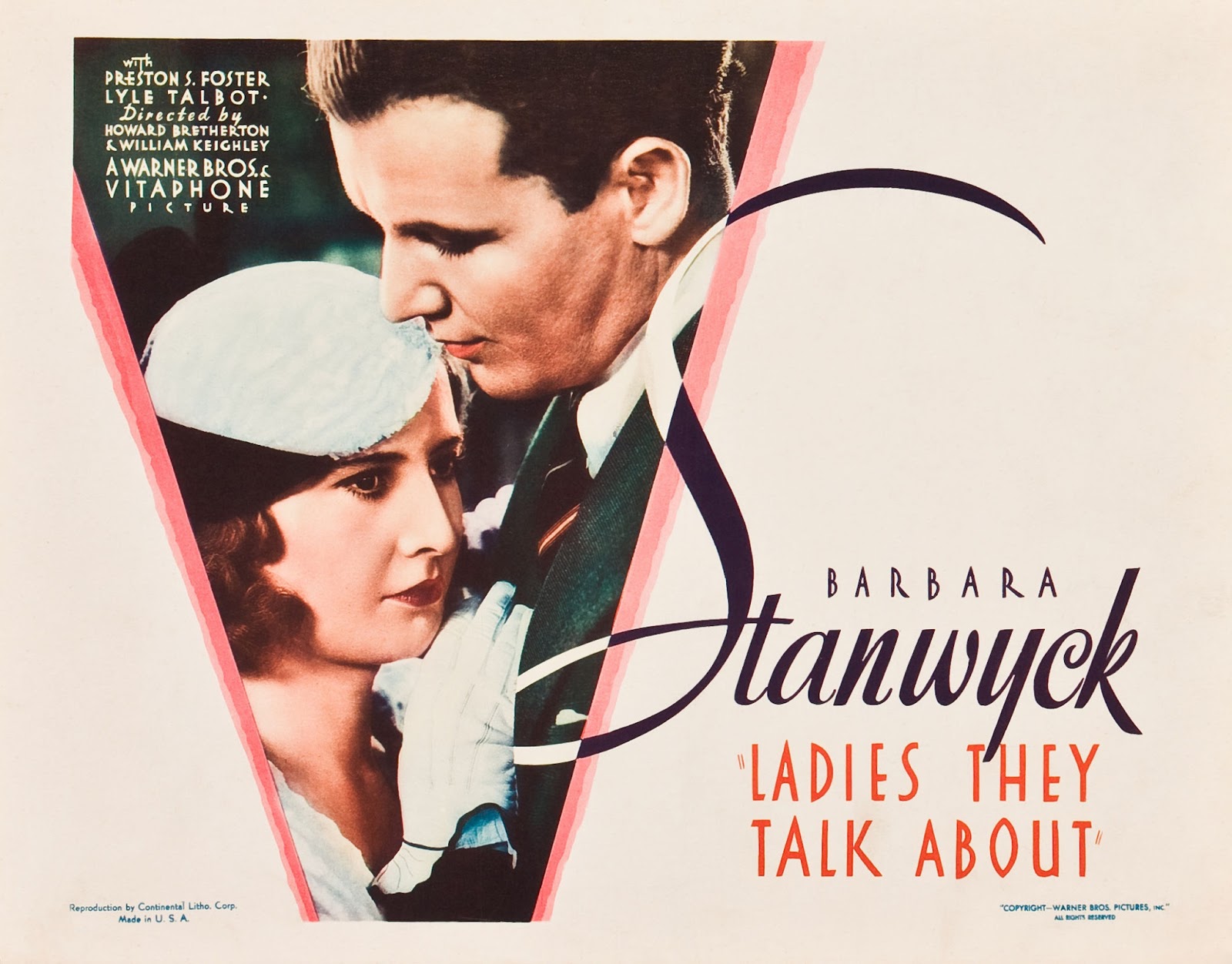Progress has been pretty slow on the Barbara Stanwyck Filmography Project, and part of the problem has been my seeming inability to find Stanwyck’s films that I had already seen before the project began, to re-watch them for review. I’ve been trying to remedy this problem, so I hopped at the chance to re-watch Ladies They Talk About when it popped up on WatchTCM after airing on the channel in November.