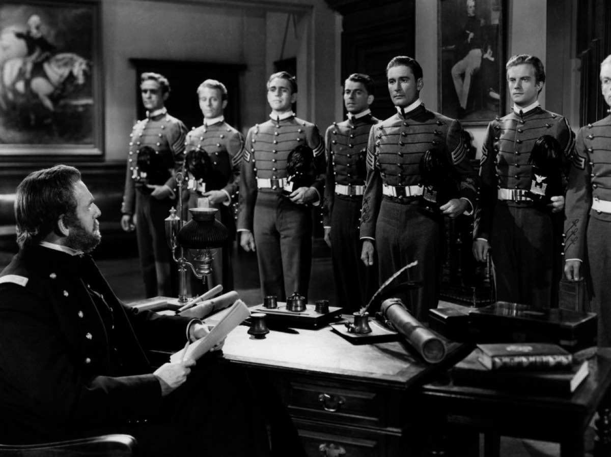 At their West Point commencement, Stuart and Custer meet Cyrus Holliday (Henry O’Neill), who is planning to build a railroad leading to Santa Fe, New Mexico. Cyrus is the father of one of their classmates. Things get complicated when both Stuart and Custer find themselves falling in love with Cyrus’ daughter Kit (Olivia de Havilland).
