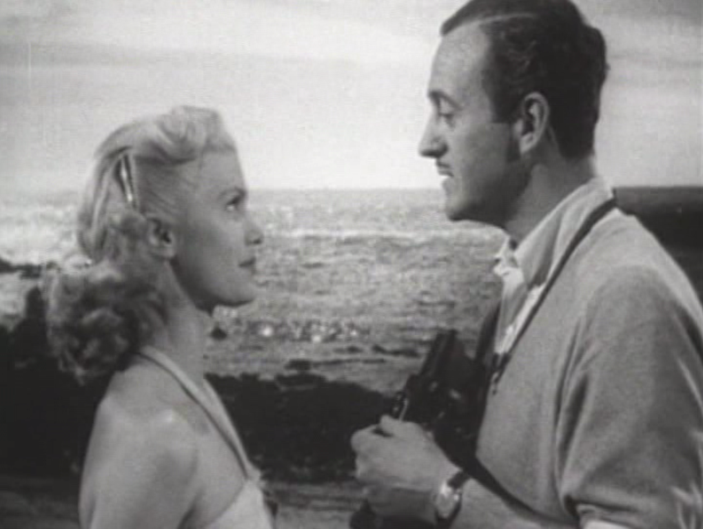 A solid performance is given by David Niven, though he seems a bit out of place. Someone more dapper and smarmy would have been better-suited for the role. After all, about half an hour into the film Bill uses blackmail in order to steal a smooch from Dorinda. If this film was made in the ’30s rather than the early ’50s, that would totally be a Warren William move.