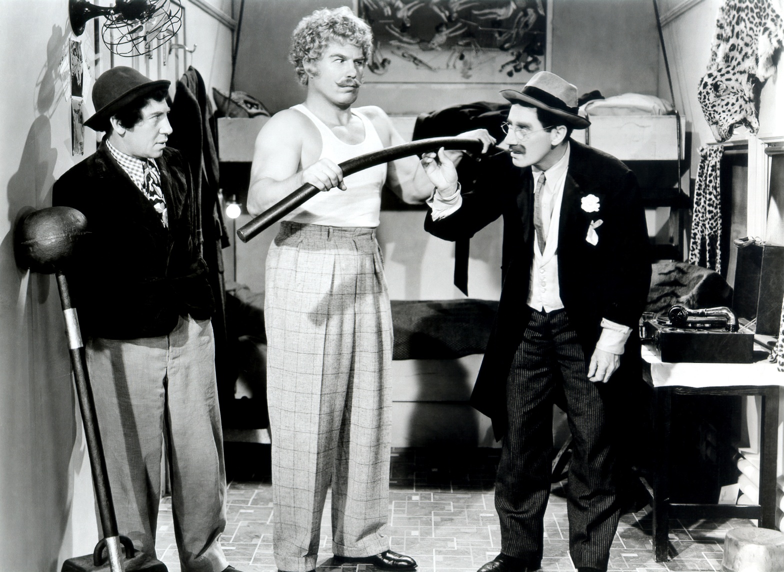 Though largely forgotten by modern audiences, Nat Pendleton was once an American hero. A champion chess player, descendent of Francis Scott Key, Olympic wrestler and Columbia University grad, Pendleton found screen fame in roles that played up his “strongman” physique. (Macfadden describes the bulk of Pendleton’s roles as “thick-headed ‘dese, dem and dose’ roles.”) Two of his greatest roles were played alongside the Marx Brothers in Horse Feathers and At the Circus. He even appeared in the first Thin Man film, as Lt. Guild!