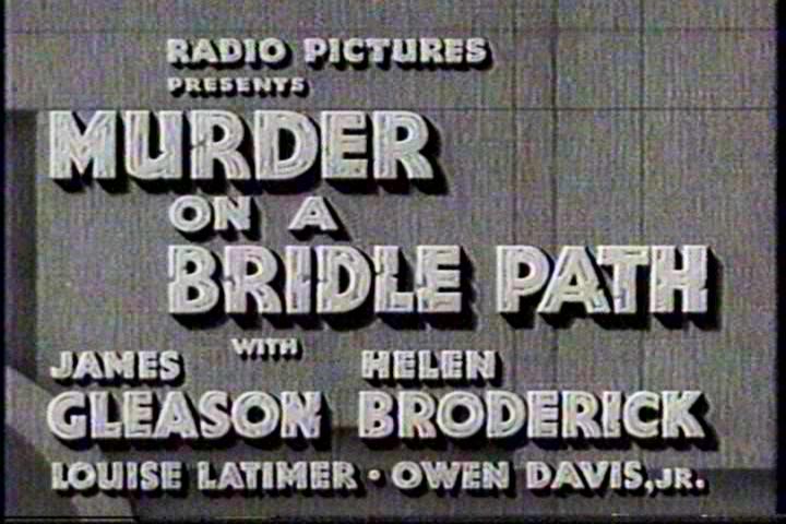 Murder on a Bridle Path was directed by William Hamilton and Edward Killy, produced by RKO and released in 1936. The film was written for the screen by Dorothy Yost, Edmund North, Thomas Lennon and James Gow from a novel by Stuart Palmer.