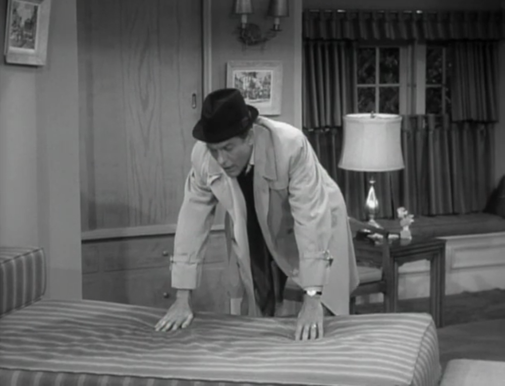 Reaction: I was a bit apprehensive going into this episode, having read a brief synopsis beforehand. The midcentury isn’t exactly known for handling sensitive issues like homelessness well. Unsurprisingly, the guy is consistently referred to as a “bum” (both by himself and by Rob and the gang) and painted as an opportunist, upping his price after Rob offers him $25 to return the script. In the end, he seems to almost redeem himself — staying away from alcohol, buying a new suit — but it turns out he’s just started stealing scripts from other shows. It’s all meant to be funny, and some viewers may find it so, but I just couldn’t enjoy this story.