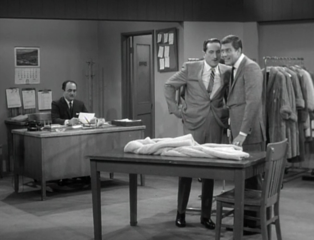 Reaction: A nice episode. Fun scenes with Buddy and Rob visiting the warehouse, and then Laura and Millie visiting the store — all using assumed code names. Laura and Millie’s visit to the store is particularly funny, as is the scene in which Sally tries her best to bite her tongue, not revealing to Buddy that his bargain was no bargain at all, but a total waste of money. Finally, she loses it and shows Buddy the coat that’s “perfect — for Smoky the Bear!”