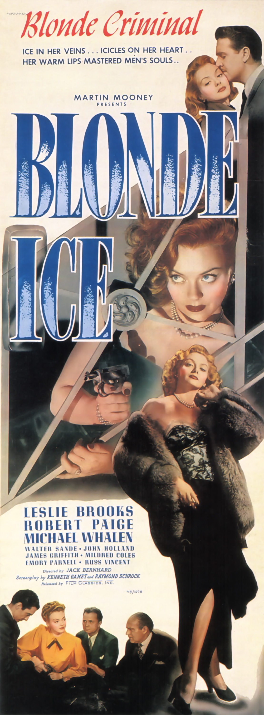 Jack Bernhard directs 1948’s Blonde Ice. The film is based on the novel Once Too Many by Whitman Chambers, published ten years prior to the film’s release.