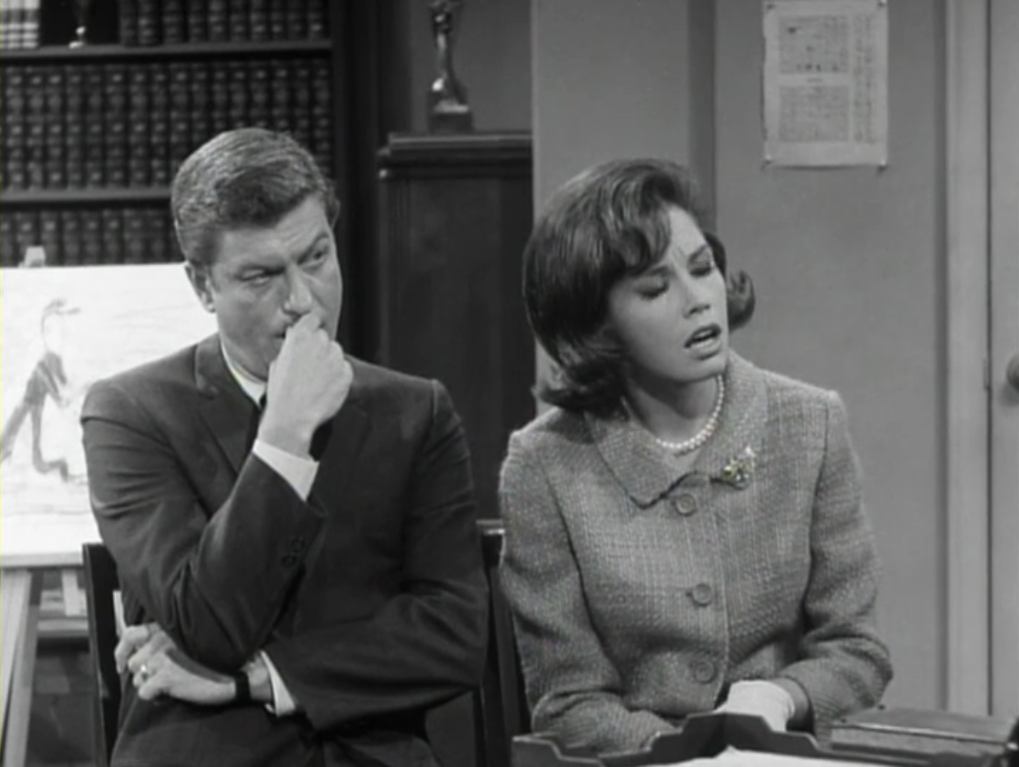 Reaction: An episode very light in story and mood. There’s no real conflict — just a few chuckles and a slightly ridiculous premise. It kind of feels like a “filler” episode but isn’t a bad one at all. There’s some added fun when Rob and Laura visit the office of the oddities column, where they meet a man with a duck-shaped potato, a woman with a dog that doesn’t eat, and a man who walked on his hands all the way from Buffalo! Easy viewing.