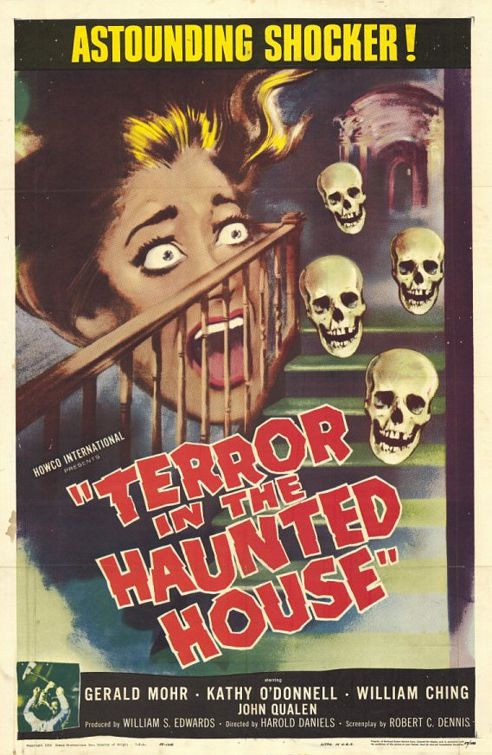 Terror in the Haunted House, released in 1958, was originally titled My World Dies Screaming. (What a title!) The film was directed by Harold Daniels (Date with Death) and written by Robert C. Dennis (Crime Against Joe).