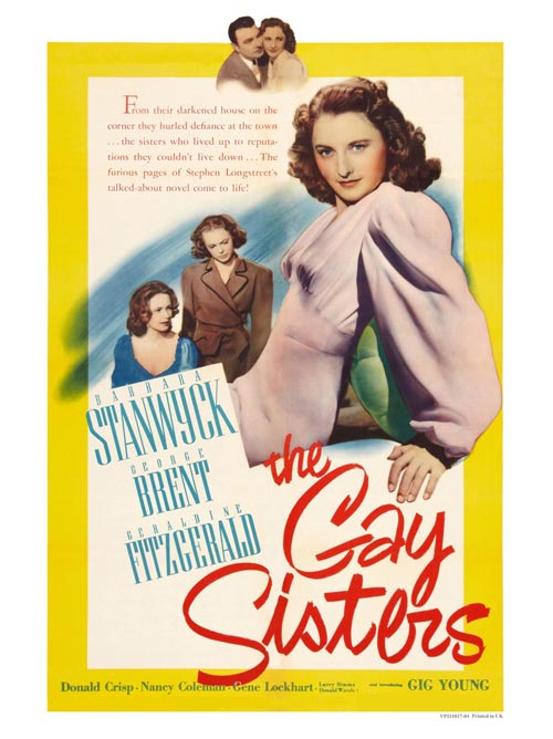 On the Stanwyck front, TMP’s favorite actress and star of the Barbara Stanwyck Filmography Project released two films, The Gay Sisters and The Great Man’s Lady. The Gay Sisters blends comedy and drama in a story about a woman determined to save her inherited house from sale, fulfilling her father’s dreaming of keeping the family land in the family name. The Great Man’s Lady tells the tale of Hannah Hoyt, who recounts the story of her life to a young biographer working on a book about her former husband, legendary pioneer Ethan Hoyt. Both films are good viewing (The Great Man’s Lady being the better of the two) and feature trademark strong-willed performances by Stanwyck.